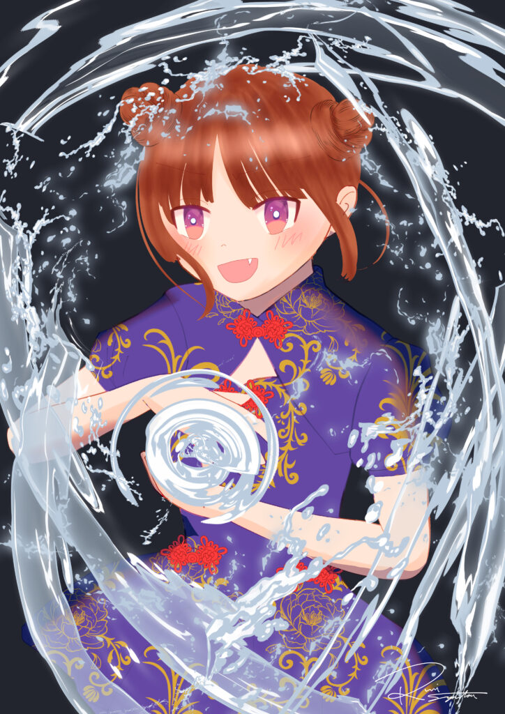 ご自慢の水魔法を使って、よっしゃ戦ってやんぞ!と意気込んでいるチャイナ娘を描きました。